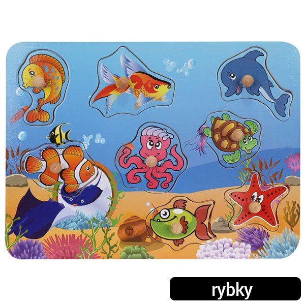 1x Drevená vkladačka – Doprava, farma, rybky