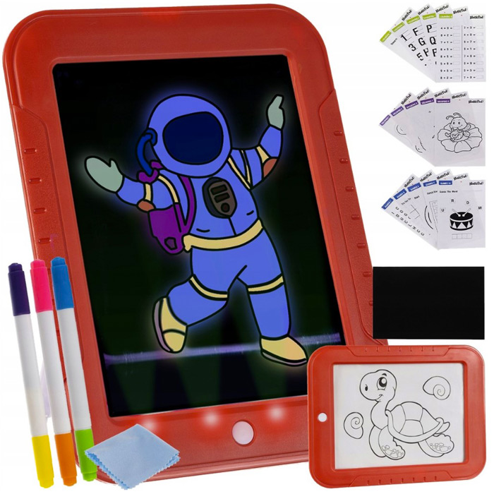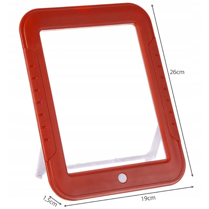 Táto obkresľovacia tabuľa podporuje rozvoj kreatívnych schopností detí od najútlejšieho veku. Tabuľa je podsvietená 4 LED diódami, ktoré vytvárajú nádherný vizuálny efekt.