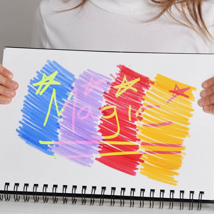 Táto súprava zahŕňa 25 fixiek – 21 farebných a 4 kúzelné fixky, ktoré menia pôvodné farby na iné, čím sa maľovanie stáva skutočne kreatívnym. Namaľované farby sa po aplikácii kúzelnej fixky zmenia, čo pridáva maľovaniu nový rozmer zábavy.
