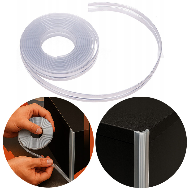 Priehľadná a flexibilná PVC páska sa jednoducho prispôsobí rôznym tvarom a splynie s interiérom, takže nezasahuje do estetiky nábytku. Jednoduchá samolepiaca montáž zaručuje rýchle a pevné prilepenie. Páska je univerzálna, ochranná a ľahko upraviteľná na požadovanú dĺžku.