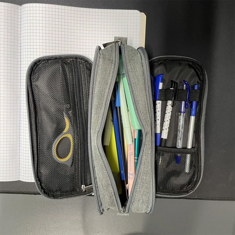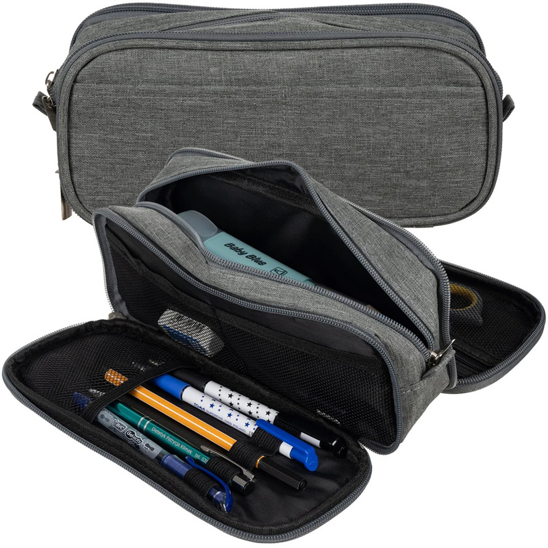 Trojkomorový peračník spája elegantný vzhľad s moderným dizajnom, čím vytvára štýlový a praktický doplnok pre každého študenta. Vyrobený z odolného materiálu zaručuje dlhú životnosť a atraktívny vzhľad, ktorý určite zaujme a uspokojí vaše požiadavky na kvalitu a štýl.