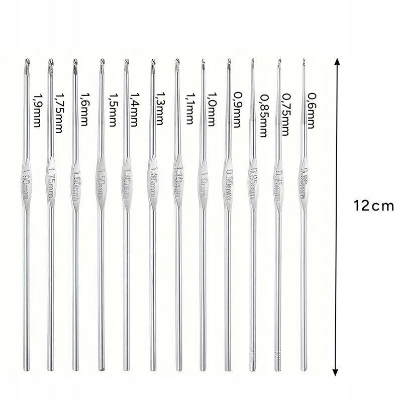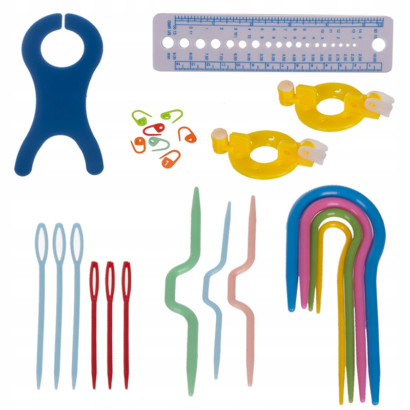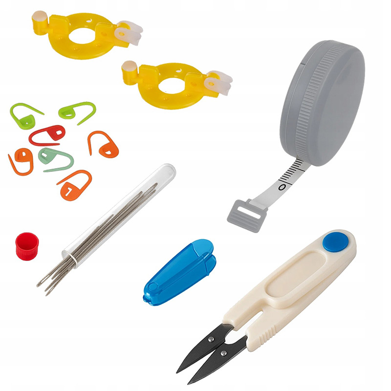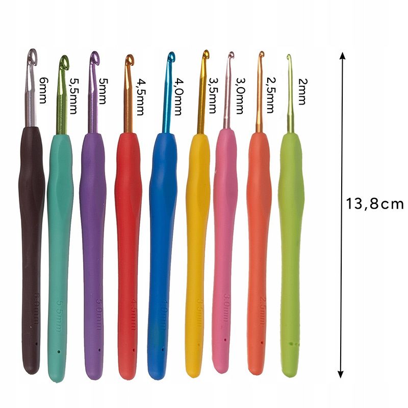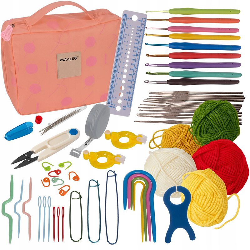 Súprava na háčkovanie obsahuje 21 háčikov 0,6 – 6,0 mm, priadzu, značkovače, ihly, pomôcky na brmbolce, meter, nožnice a ďalšie príslušenstvo. Vhodná pre začiatočníkov aj pokročilých – od jemných čipiek po hrubé vzory. Háčiky majú jasné označenie veľkosti a ergonomický tvar pre pohodlnú prácu.