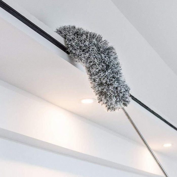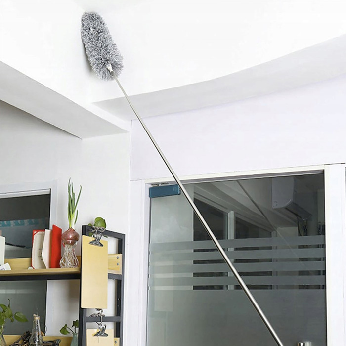 Mimoriadne praktická prachovka, s ktorou sa dostanete aj na ťažko prístupné miesta. Teleskopická tyč je nastaviteľná od 84 po 250 cm. Prachovka obsahuje dva nadstavce. Pozdĺžny nadstavec je určený na štrbiny a rovné povrchy a vďaka možnosti ohýbania sa dostanete aj pod chladničku alebo za nábytok. Druhý nadstavec je okrúhla prachovka, ktorá dôkladne odstráni prach a pavučiny spoza skríň, pod stropom a vymetie mnoho iných zákutí.