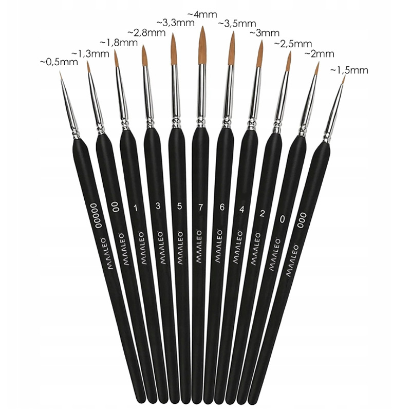 Precízne nylonové štetce – 11 veľkostí pre detailnú aj kreatívnu maľbu.