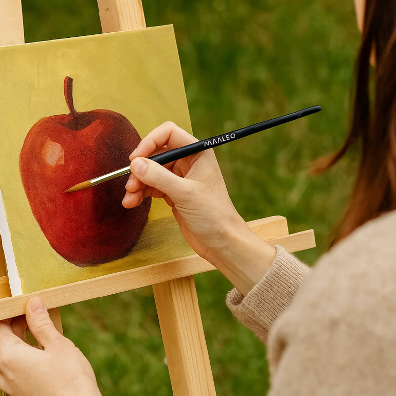 Súprava umeleckých štetcov obsahuje 11 nylonových štetcov vo veľkostiach 00000–7, ideálnych na detailnú prácu a presné tieňovanie. Rukoväte z brezového dreva sú ľahké, odolné a pohodlné na úchop. Kvalitné nylonové vlákna majú vynikajúcu pružnosť a trvácnosť, vhodné pre akryl, akvarel aj gvaš. V balení je aj praktický stojan na štetce.